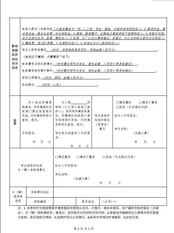 广东省家庭经济困难学生认定申请表